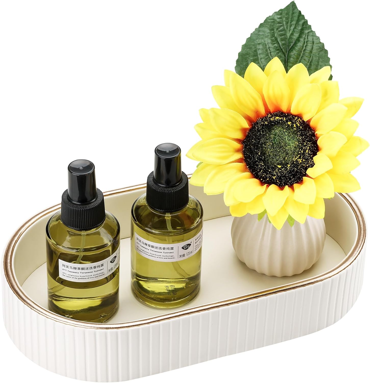 GORESE PU Leather Valet Tray Nightstand Organizer, Oval Perfume Trays Key Bowl Jewelry Dish for Bedside Dresser Entryway Table, Vanity Tray for Bathroom, EDC Trays for Men Women, 11×5.9 in, Black