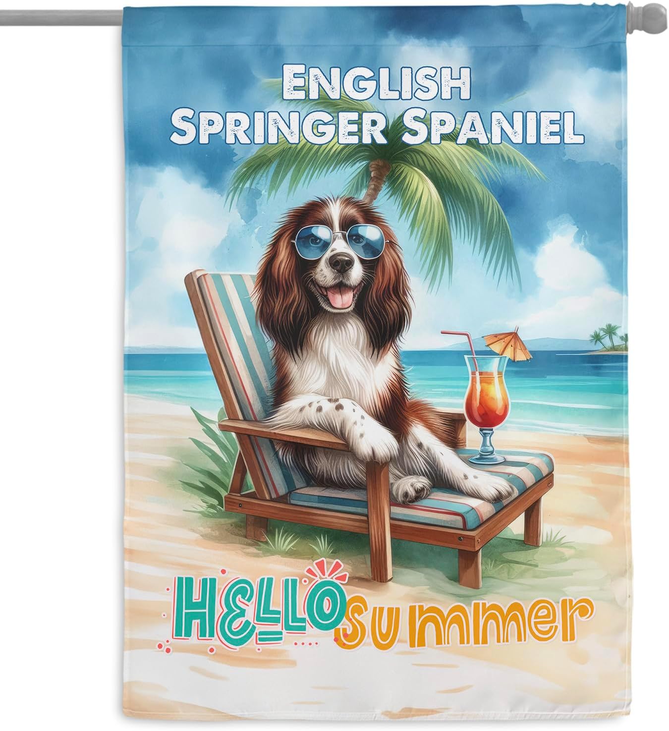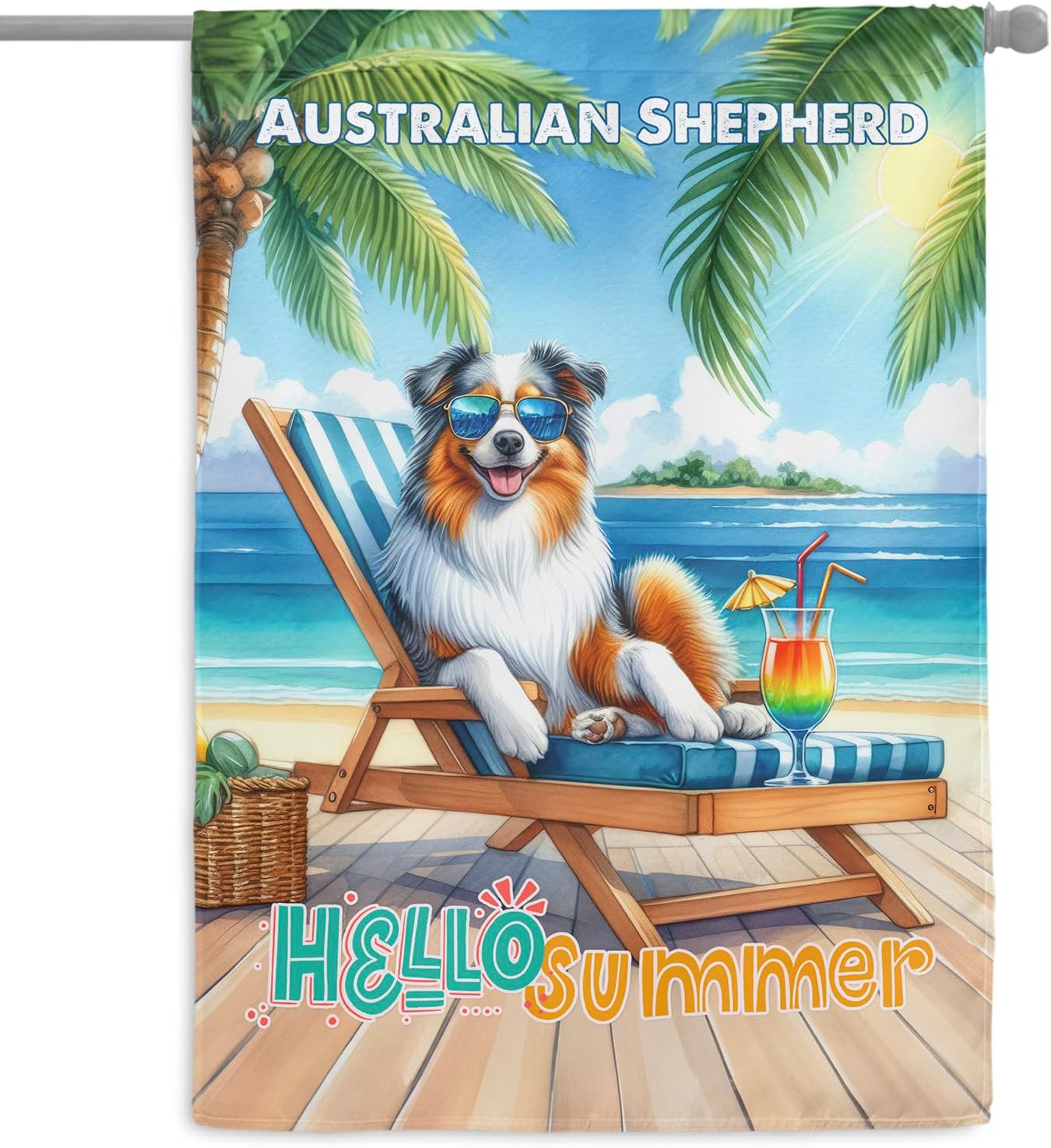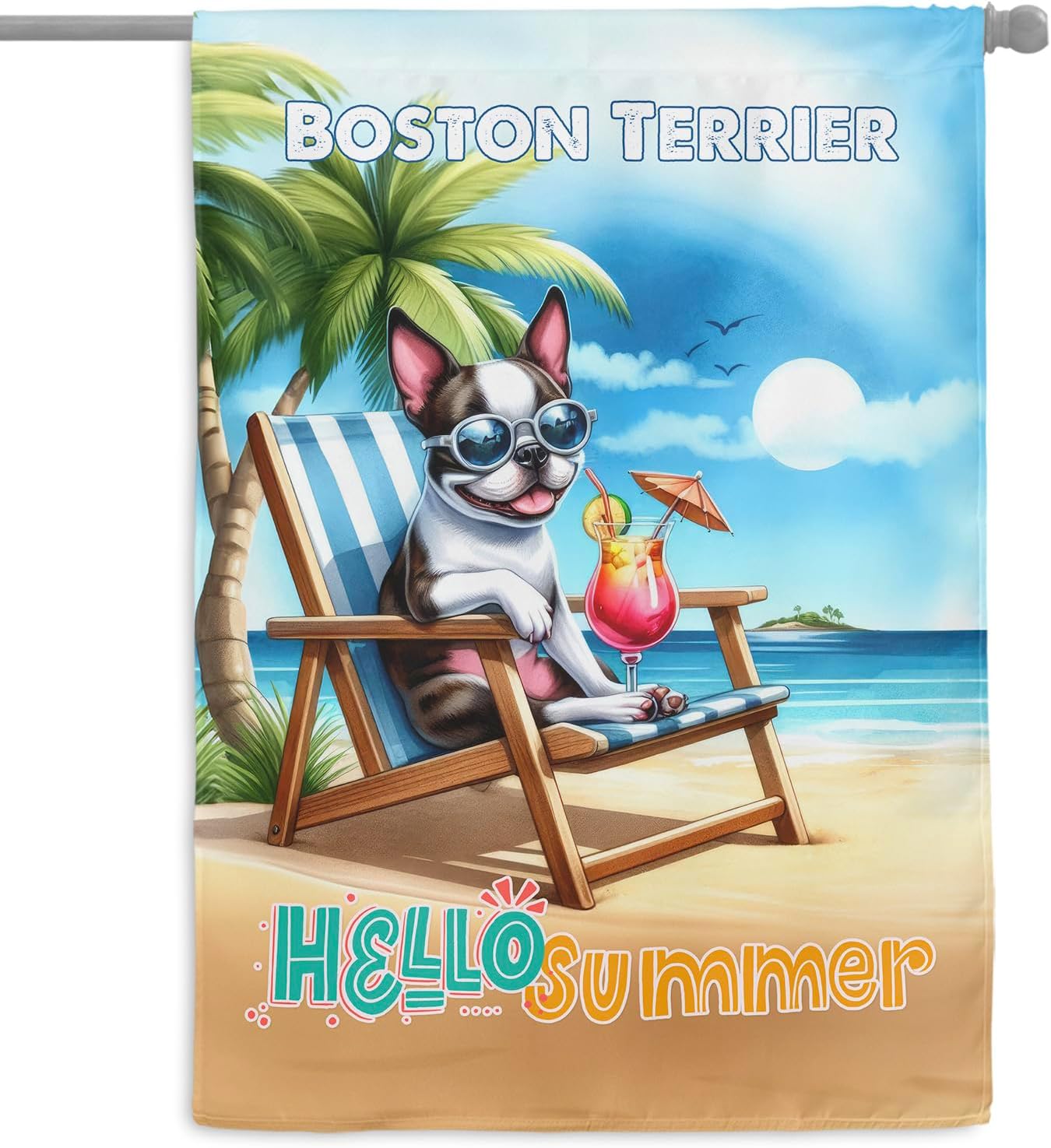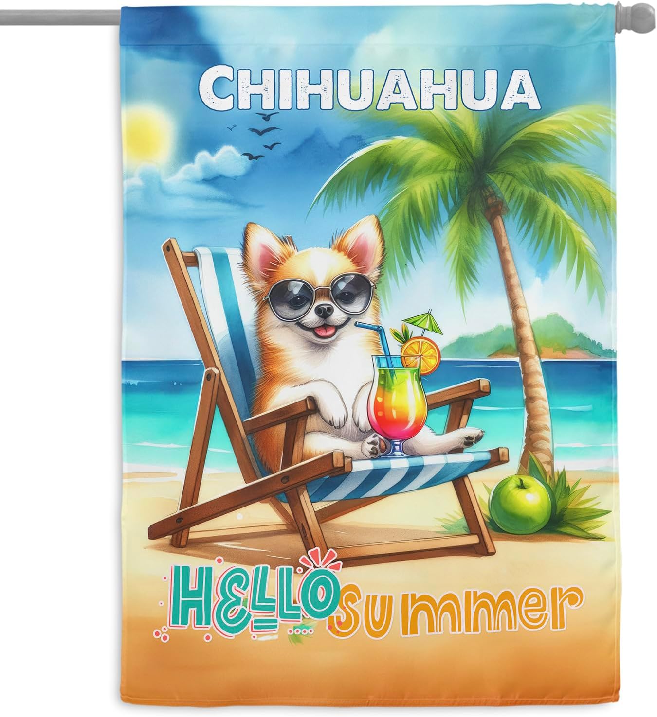 Personalized Custom Name Yorkshire Terrier Hello Summer Beach Theme with Sunglasses and Tropical Cocktail House Flag 28x40in Double Sided Yorkie Dog Lover Gifts Idea Outdoor Decor - 009