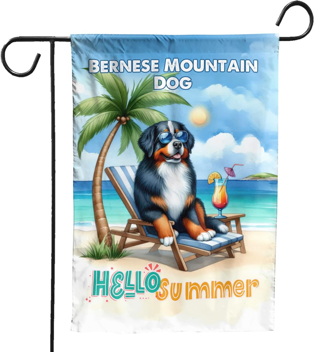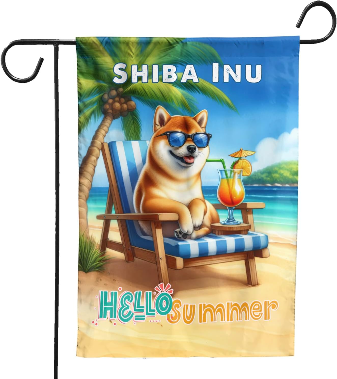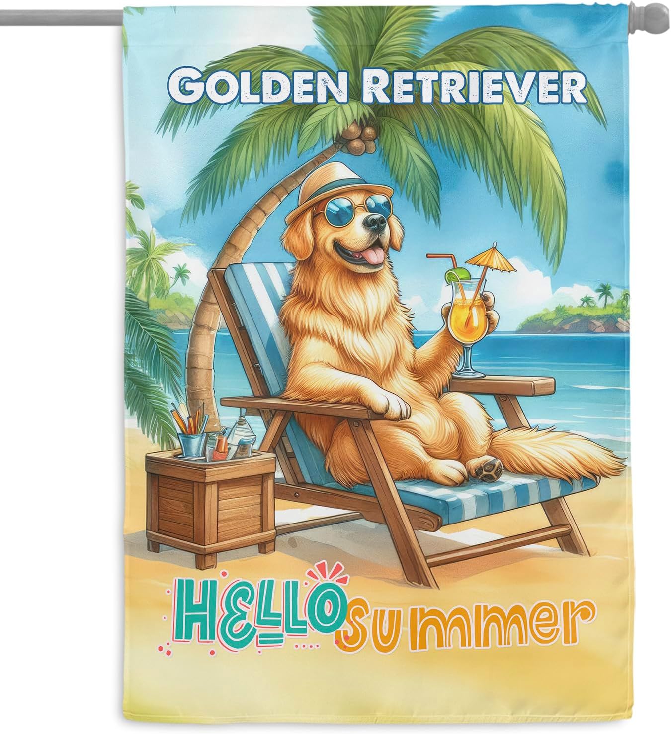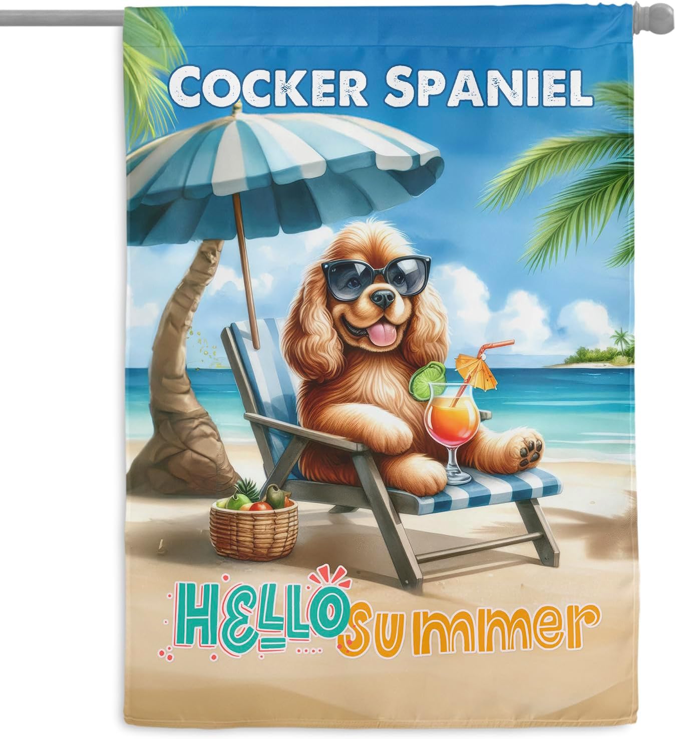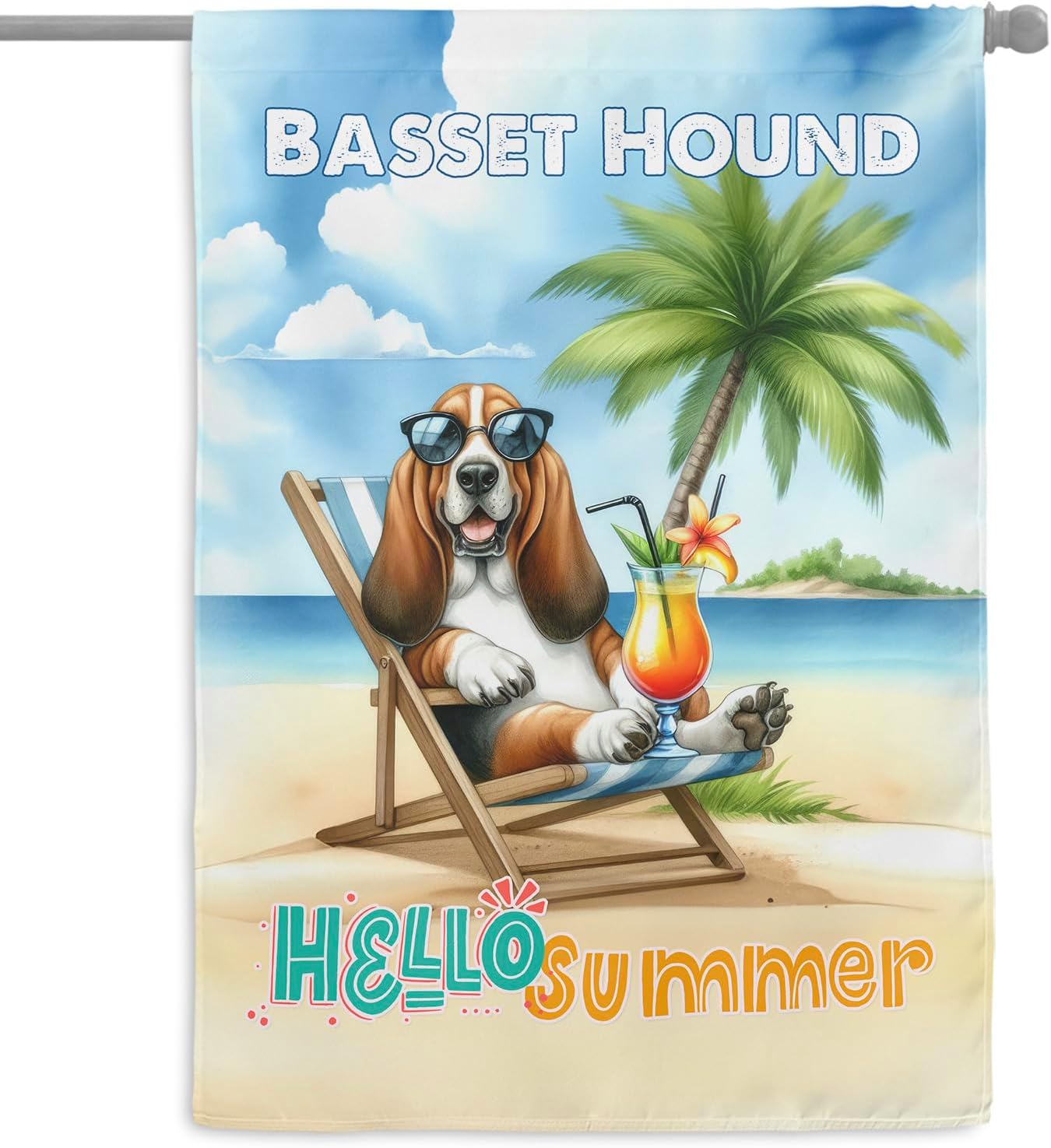 Personalized Custom Name Yorkshire Terrier Hello Summer Beach Theme with Sunglasses and Tropical Cocktail House Flag 28x40in Double Sided Yorkie Dog Lover Gifts Idea Outdoor Decor - 009