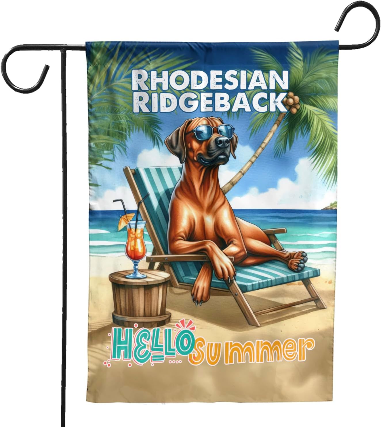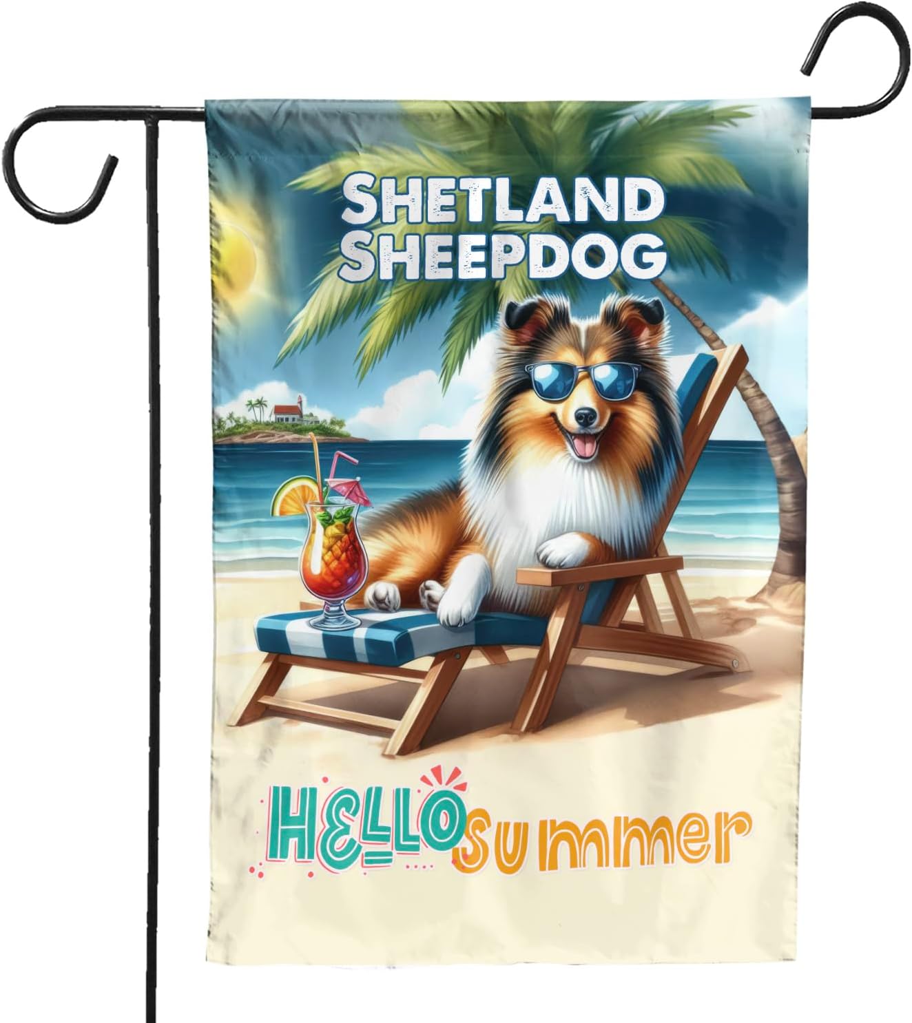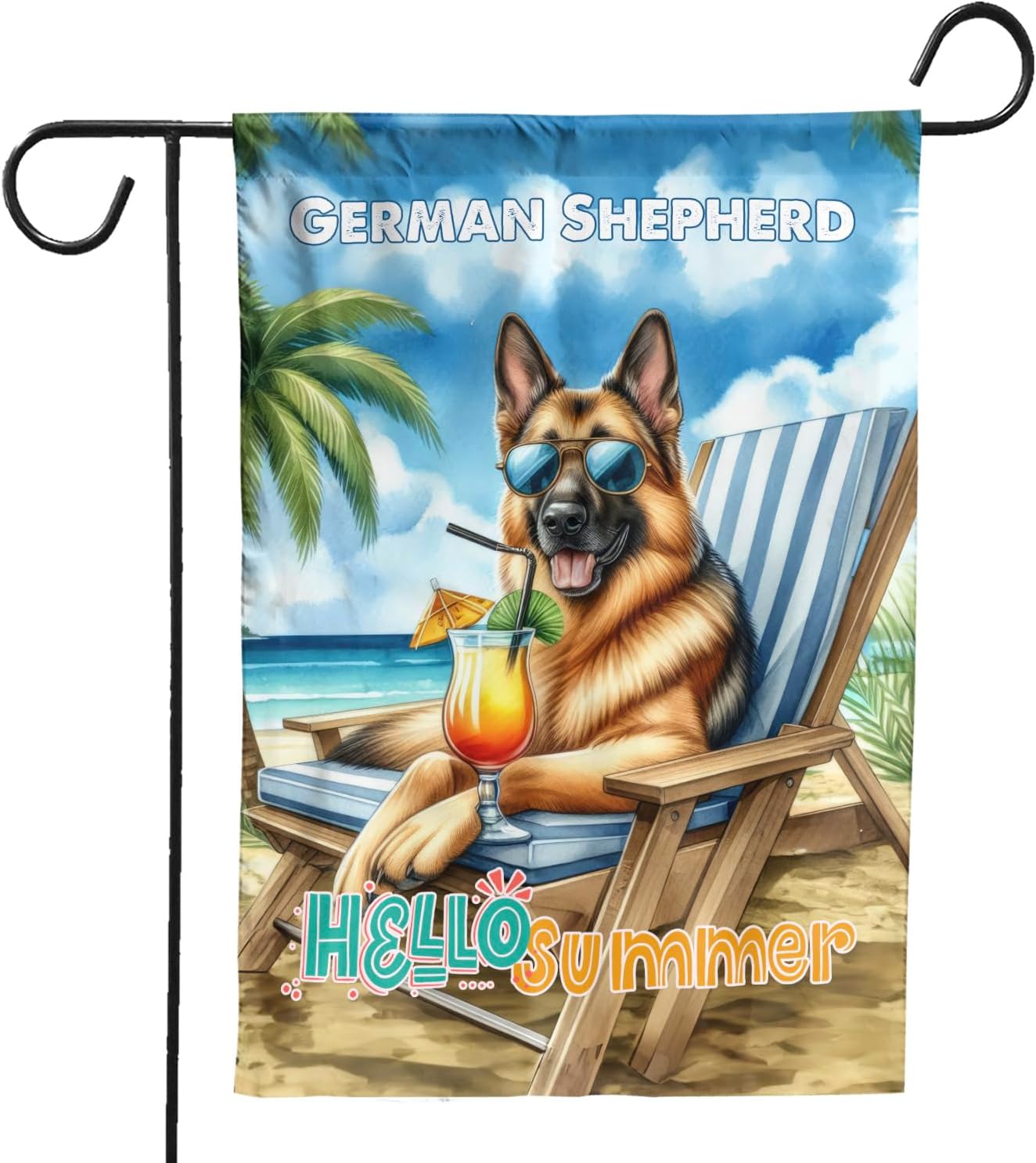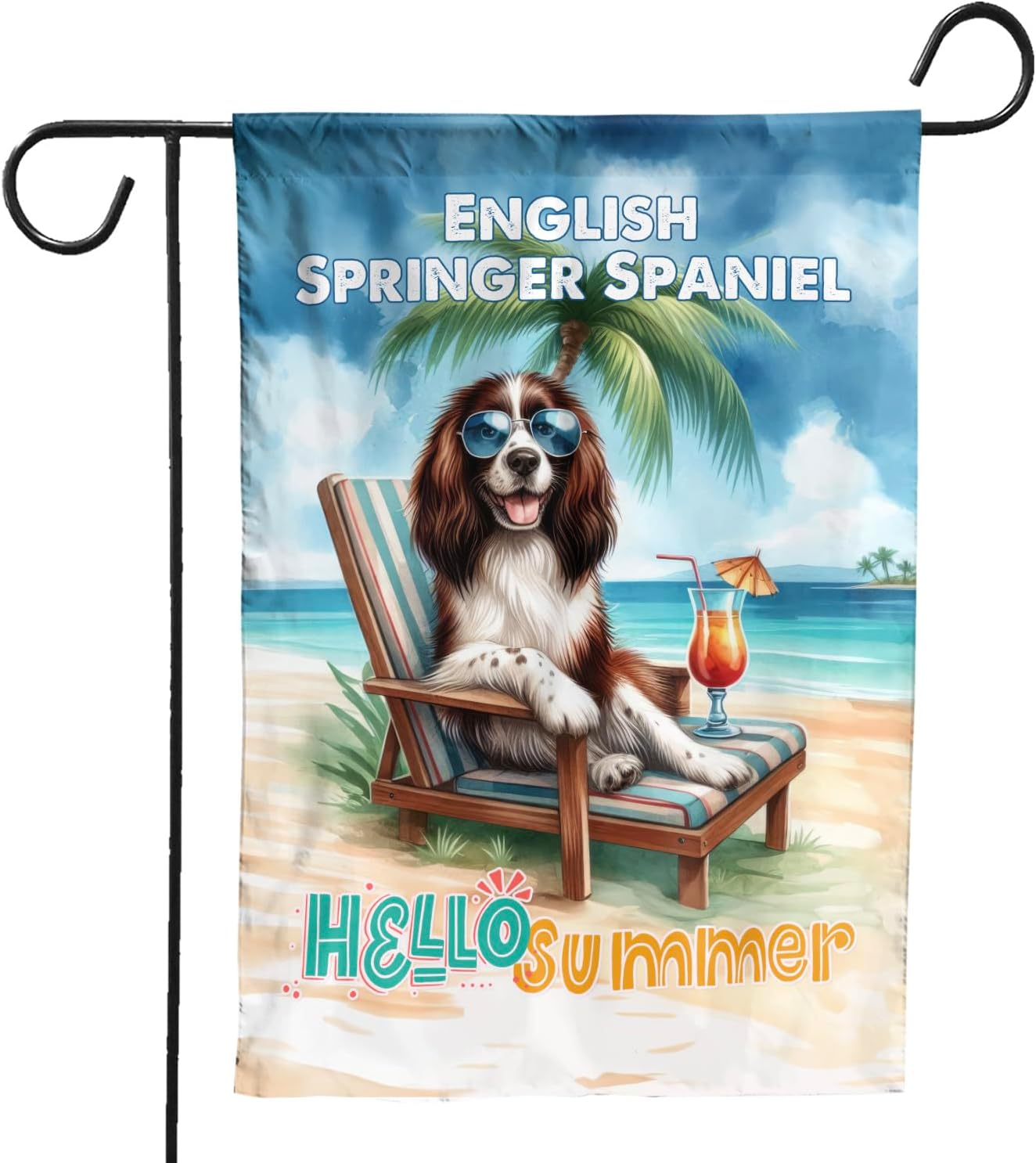 Personalized Custom Name Yorkshire Terrier Hello Summer Beach Theme with Sunglasses and Tropical Cocktail House Flag 28x40in Double Sided Yorkie Dog Lover Gifts Idea Outdoor Decor - 009